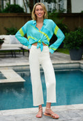 Can be worn tucked in, tied at waist for a dresssier chic look or over a bathing suit and buttoned up for more daytime casual.